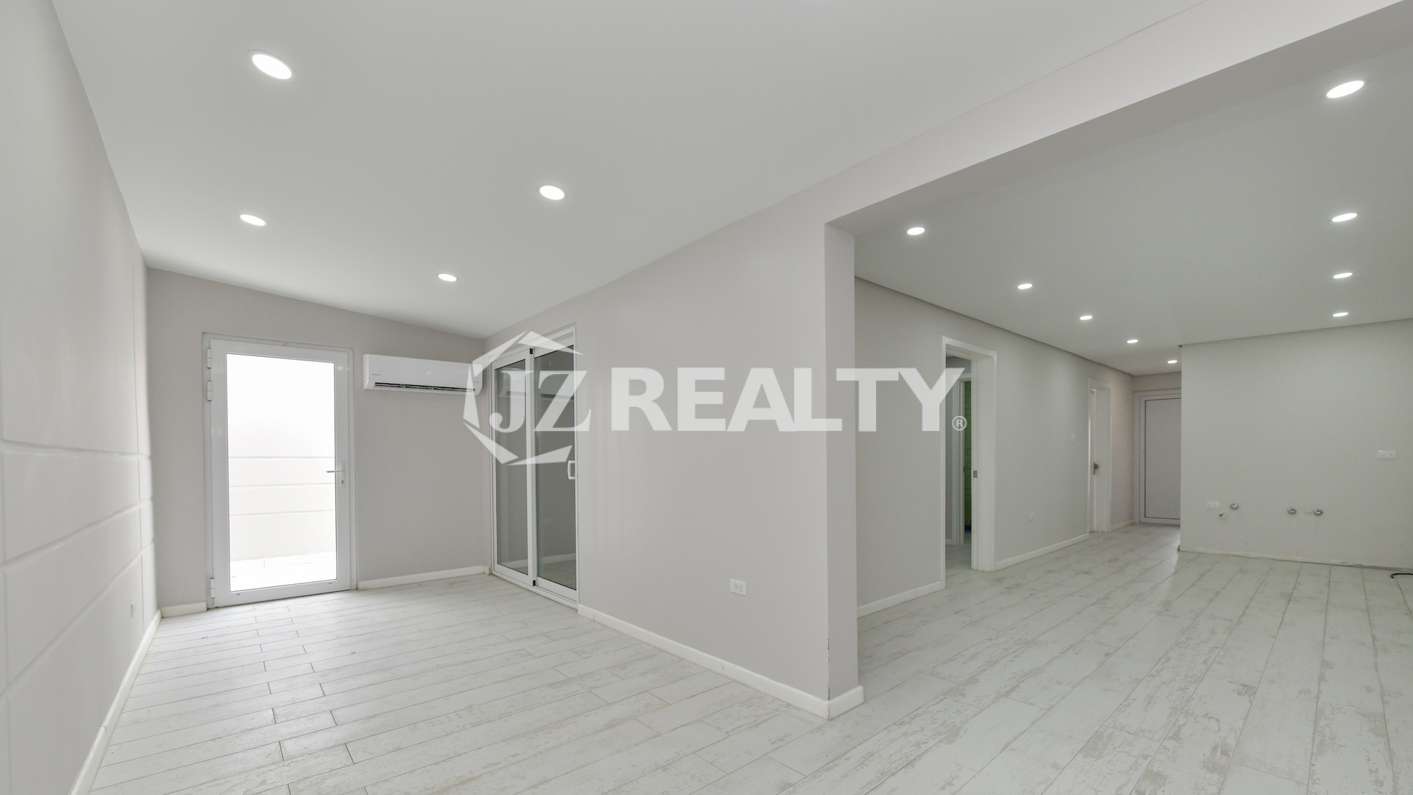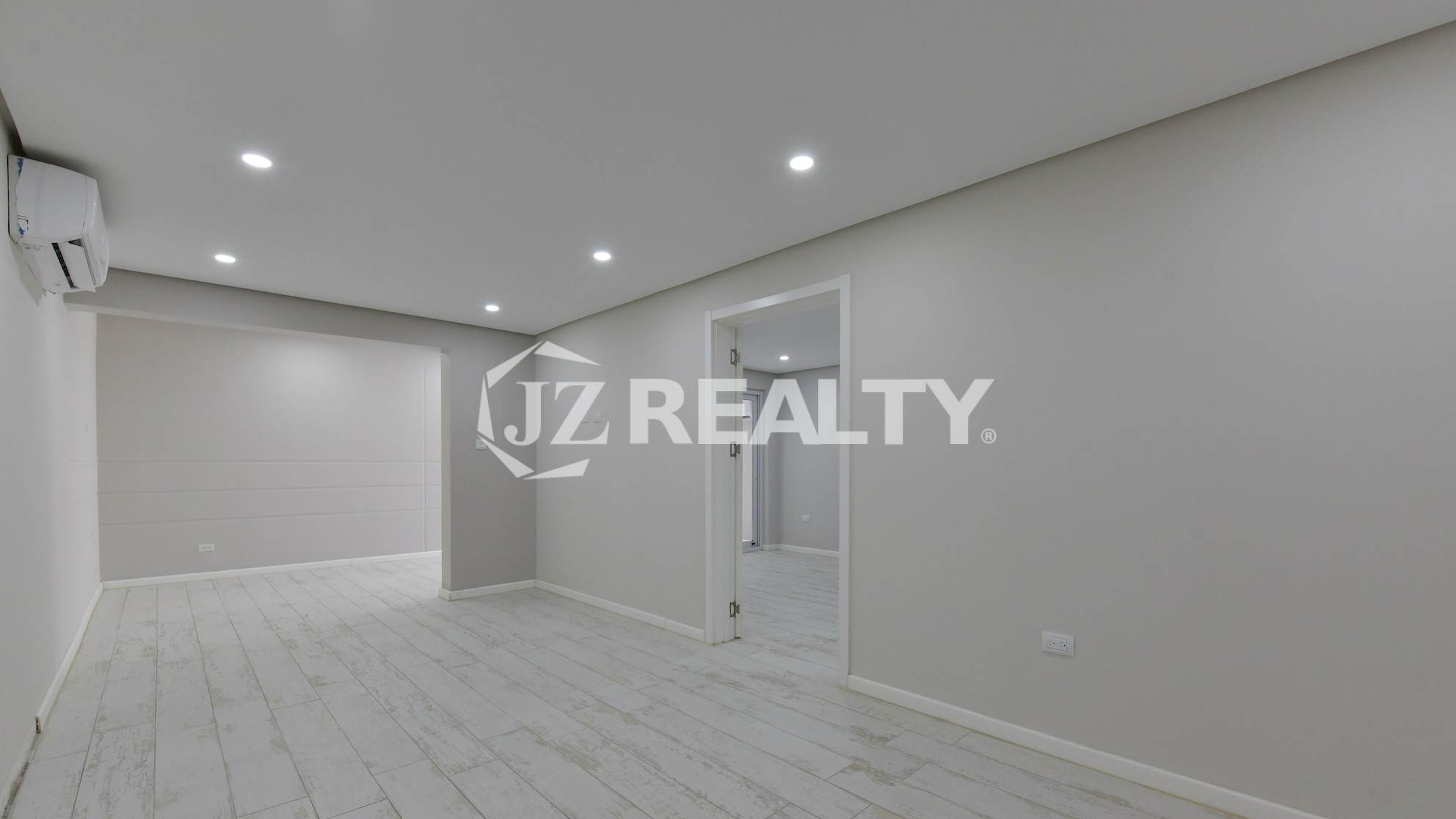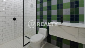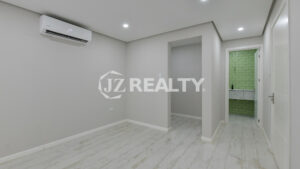 - Porcelain tile flooring with elegant baseboards
