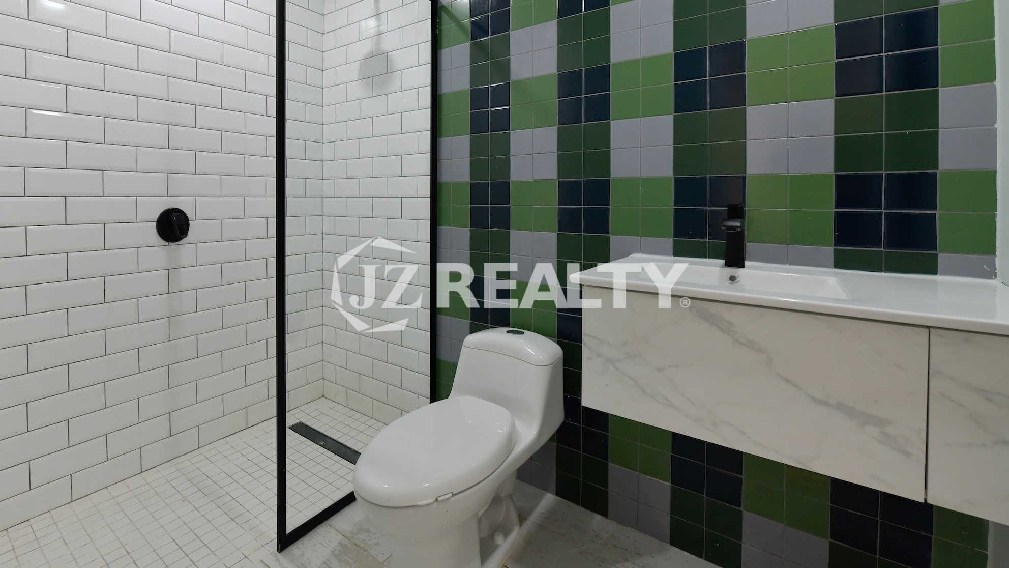 - Floor-to-ceiling ceramic tiles
